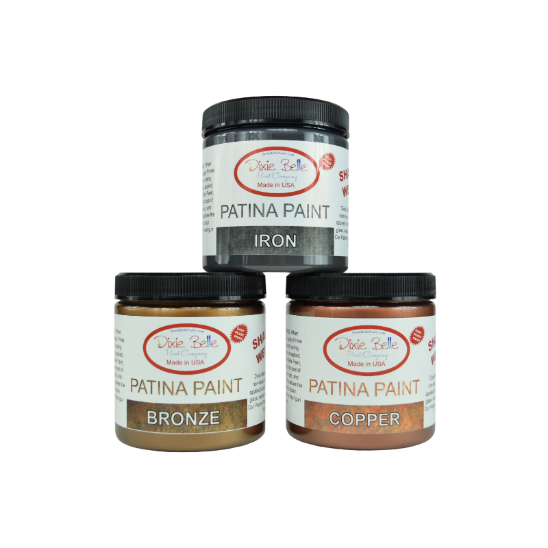 Bitte beachte, dass der Patina-Look nur in Kombination mit der Anwendung des Patina Sprays von Dixie Belle funktioniert. Du kannst das Patina Paint natürlich auch einfach als Farbe nutzen.