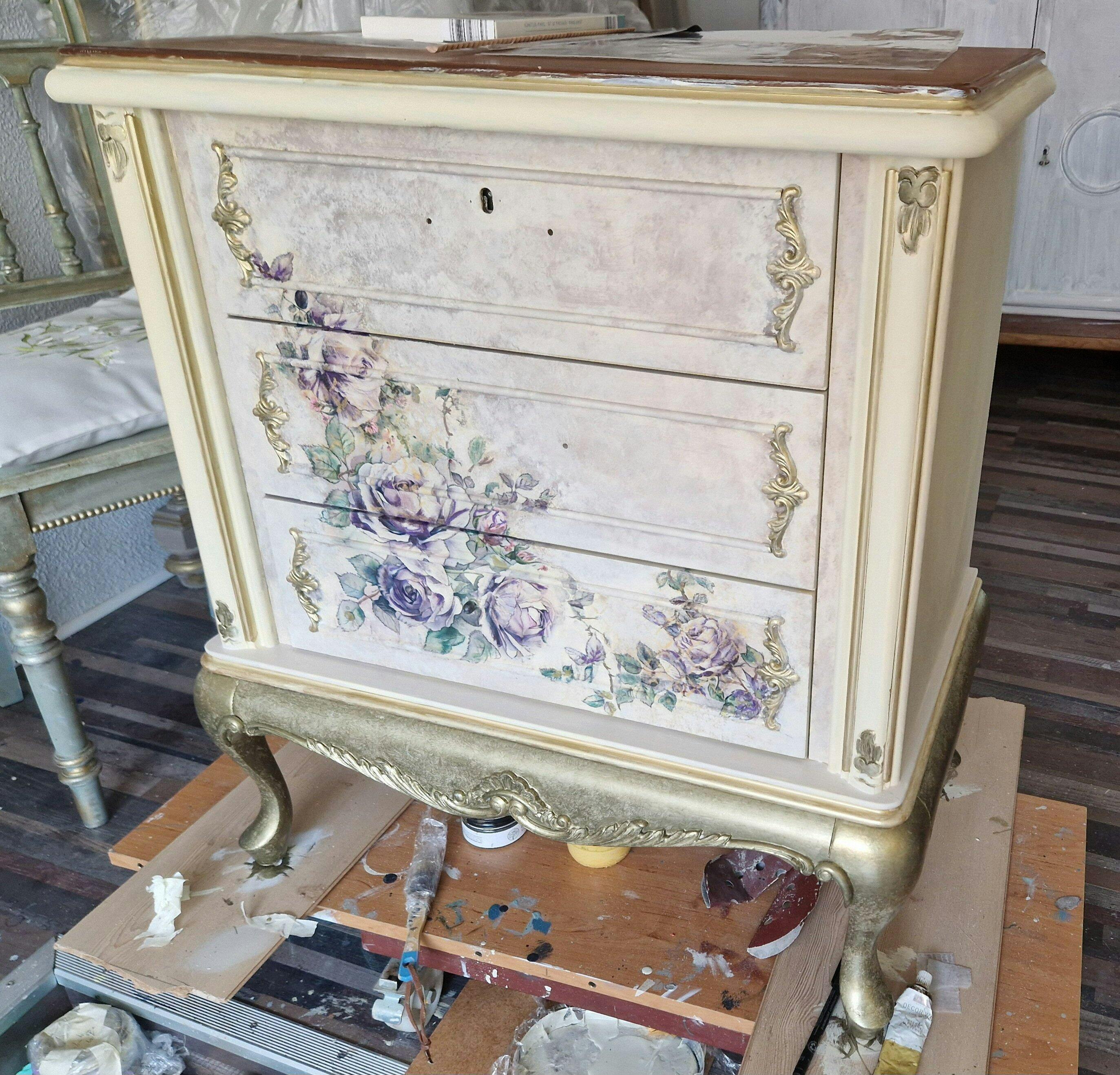Zur Verarbeitung der Decoupage Papiere empfehlen wir das Decoupage & Transfer Gel von Fusion oder den Dixie Belle Clear Coat Sealer. Bei Letzterem hast du dann eine Auswahl an drei unterschiedlichen Oberflächenergebnissen: glänzend, satin oder matt