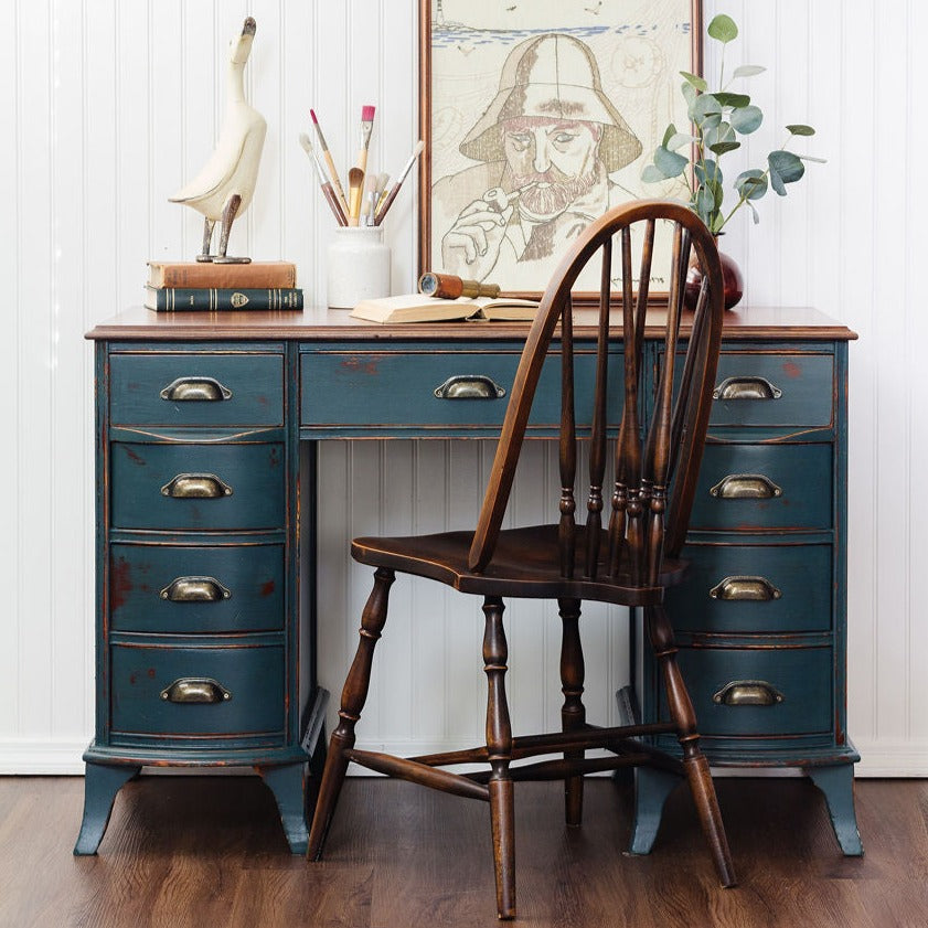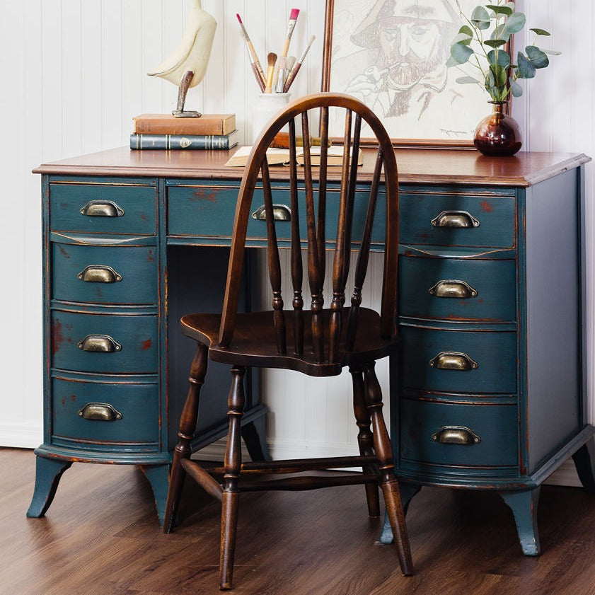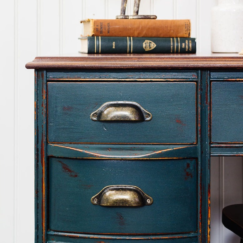 Milk Paint ist berühmt für seinen „Chippy“-Look, der entsteht, wenn die Farbe ohne vorheriges Schleifen auf eine zuvor gestrichene Oberfläche aufgetragen wird. Es platzt in bestimmten Bereichen ab und erzeugt so einen authentischen Look mit Zeitabnutzung.